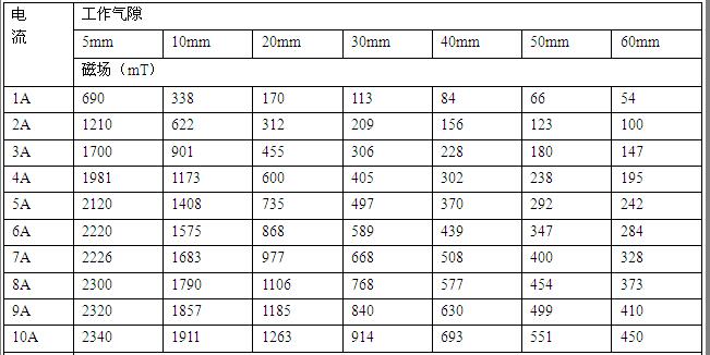 電磁鐵工作氣隙磁場是根據(jù)電磁感應原理,電流源對磁場線包供直流電流,并由導磁回路聚磁產(chǎn)生磁場,調(diào)節(jié)氣隙大小,改變極面直徑,調(diào)整工作電流均可改變工作氣隙磁場的大小強弱。